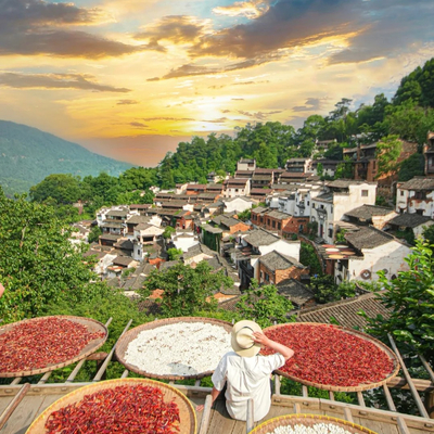 篁岭古村,属典型山居村落,周边千棵古树环绕,万亩梯田簇拥,造就了世外桃源般的山居田园生活。 这里自然环境优美,历史人文厚重,是古徽州历史文化名村。