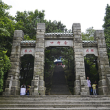 百步云梯的出口,离“莲梗”不远处有两块巨石,一形如龟,一形如蛇,两石平行。那龟蛇二石又恰在梯口,如同把守,故名“龟蛇守云梯”。
