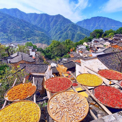 篁岭古村,属典型山居村落,周边千棵古树环绕,万亩梯田簇拥,造就了世外桃源般的山居田园生活。 这里自然环境优美,历史人文厚重,是古徽州历史文化名村。
