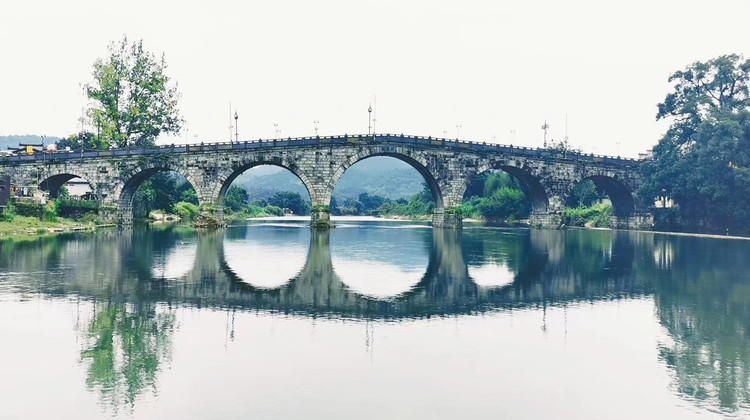 古镇坐落在山谷之中,四周群峰环抱,整个古镇南踞象山,北卧狮山,瑶河穿镇而过,形成山水萦绕的地理环境,让古镇更显宁静清澈。