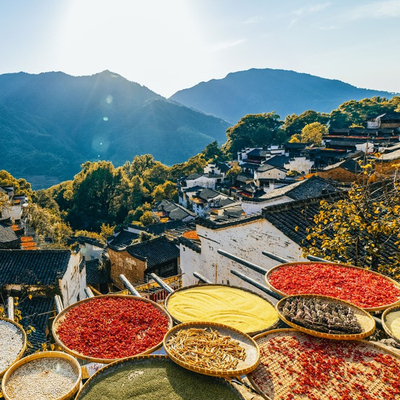 篁岭古村,属典型山居村落,周边千棵古树环绕,万亩梯田簇拥,造就了世外桃源般的山居田园生活。 这里自然环境优美,历史人文厚重,是古徽州历史文化名村。