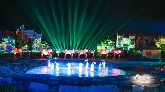 在山川草木间,在月色星空下,一场充满徽州民俗气息的文化盛宴拉开演出序幕。演出共分四个篇章,每个篇章都有其独特的主题和情节。