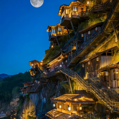 夏天来婺源篁岭景区,开启一场奇妙夏夜之旅。一览古村夜景,感受婺源篁岭景区的夕阳晚霞,万家灯火,随着舞动盘旋的百米长龙游走在乡间的路上,提一盏花灯漫步在古朴的街巷,感受魔幻森林的浪漫,在村口欣赏一场复古老电影,逛一逛乡村的纳凉集市。