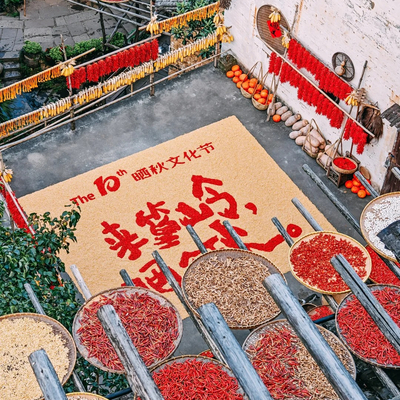 立秋一到,篁岭古村就成了一个天地晒场。来晒秋人家赏红枫,欣赏屋顶晒秋,枫林尽染,体验民风民俗,手摇风车、套南瓜等,感受晒秋人家的乡愁韵味。