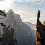 巨蟒出山是一座象形石柱,经大自然长期的风化与重力作用而形成,峰壁峭立,顶部稍平,颈部略细,就像一条破山而出的巨蟒,可谓是大自然的鬼斧神工。它与东方女神观遥遥相对,从金沙索道(东部索道)上山后到南清园景区游玩途中便可欣赏到。