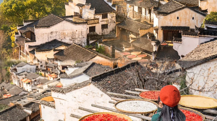 婺源以其古村落、徽派建筑和美丽的自然风光闻名,每年秋季,婺源的晒秋活动都会吸引大量游客前来观赏和体验。晒秋是婺源农民在秋收后将农作物如辣椒、玉米、南瓜等晒干的传统习俗。游客在这里可以亲自参与到晒秋的过程中,体验将农作物摆放在晒匾上的乐趣。总之,婺源晒秋不仅是一种美好的视觉享受,更是一种深入体验乡村生活和传统文化的独特体验。通过参与晒秋活动,游客不仅能欣赏到美丽的自然风光,还能感受到婺源浓厚的文化氛围和淳朴的民风。地址: