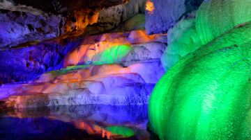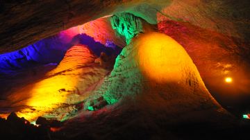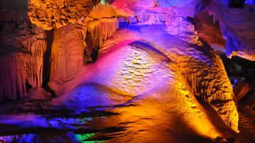 洪岩仙境·地下瓷世界位于洪岩镇境内,景区分为溶洞和石林两部分,值得一看的是距今已有3亿多年的地下溶洞。洪岩仙境·地下瓷世界的虽名气不及桂林七星岩之类的知名景点,但景致可圈可点。溶洞规模不小,其中还有一条地下瀑布,夏天十分清凉,避暑赏景一举两得。洪岩汽车站位于景区出口附近,由此走到入口大概10来分钟,坐摩的过去15块左右。上山的路是不错的柏油路,过了售票处往里走一段便是洞口。洞内的游览,顺着步道和指示牌步行即可,过了“仙凡界”便明显感到进入清凉世界,瀑布的水流声在洞口也清晰可闻。洞内比较形象石景被命名为仙人田、碧螺姑娘、金鸡报晓等等,可参考旁边的展牌发挥想象。洞内的石壁上有许多细流,大的水流便是九天瀑布,是洞内让人难忘的景观。这里温度较低,而且水汽大。瀑布旁有一条有些湿滑的台阶,行走时需格外注意安全。由于溶洞深埋在地下,从洞口下到洞里有几层楼高,后从洞里出来又到了几层楼高的山顶。站在制高点的松漠亭上,放眼望去是青绿的植物和零星点缀的村庄,充满了生命力。下山路上正好游览石林,石林里的树木不大,但数量众多,还有藤蔓缠绕,很有特点。不过,这里的景色和溶洞比起来逊色得多,若时间不充裕,简单浏览即可。后走过一段竹林,便能到达景区出口了。