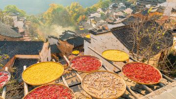 立秋一到,篁岭古村就成了一个天地晒场。来晒秋人家赏红枫,欣赏屋顶晒秋,枫林尽染,体验民风民俗,手摇风车、套南瓜等,感受晒秋人家的乡愁韵味。