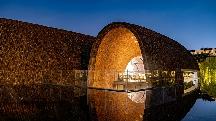 博物馆的造型就是以“窑”的形态展现的,多个曲面拱体结构,红色砖墙具有古朴的气息。馆内的展品主要来自御窑厂历代官窑遗址所取得的重要陶瓷考古成果以及发掘的各个时期的重要遗物。