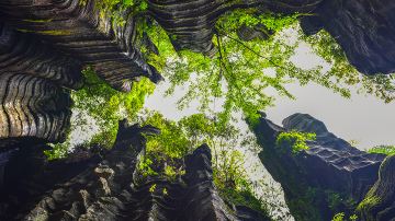 1号展室在馆外,曾是茶厂的瞭望台,登梯上去,才发现它被改造成了蜂巢万花筒,草木的四季变化被折射如幻境一般;剩下的仓库和老民房则成了另外3座展室,其中4号展室长年展出长近20米的巨型水墨画《驾云起飞》,画前长纱随风舒展,仙逸灵动。