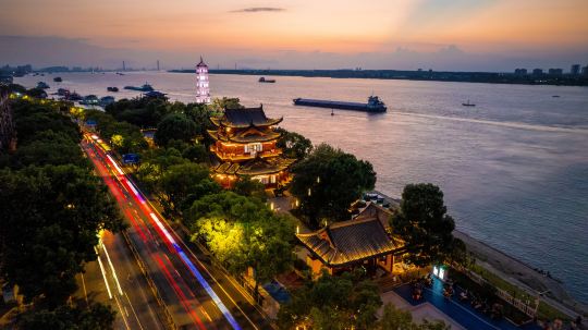 锁江楼位于九江市区的长江边上,如要乘船进入九江水域时,锁江楼的宝塔(文峰塔)就会映入眼帘,因此,锁江楼就成为了九江的象征。