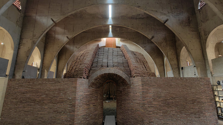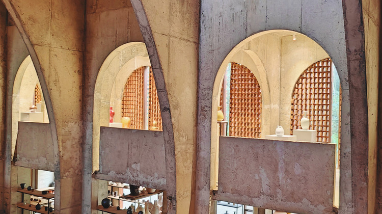 窑房大厅在烧窑时用来满窑、堆松材、点火、烧窑、开窑等,平时与侧廊二层为艺术馆作品展览空间。随着时代的变迁和传统工艺的濒临消失赋予了这座窑房特殊的文化和象征意义。这一空间如一座圣堂一般,为烧制瓷器这一行为塑造出一种神圣的仪式感。
