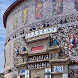 浮梁县新平村瓷宫位于景德镇浮梁县新平村,是一个以“瓷器”为材料所打造的建筑,整个浮梁县新平村瓷宫耗费了6万多件瓷器,全身镶嵌了数万件各色瓷片、瓷瓶、瓷盘,主要有景德镇四大名瓷:青花、玲珑、粉彩和颜色釉。瓷器一半嵌入墙体,摆放成各种造型,风格别出心裁,大胆粗犷。“宫殿”上还镶嵌了大量大小不一的瓷板画。装饰所用瓷器都是老人数十年积累之物,其中多为上世纪80年代柴窑烧制,不乏精品。