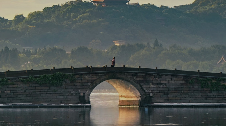 西湖十景之首,为北宋诗人苏东坡主持构筑而成,堤上的六座小桥加上两边的景色意境很动人